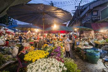 Viele prächtige und farbenfrohe Fotomotive bietet der Blumenmarkt an der Chakphet Road. Dies ist der wahrscheinlich grösste Blumenmarkt in Thailand und bietet eine riesige Auswahl an verschiedensten Pflanzen, Schnittblumen und Orchideen und dies zu unglaublich niedrigen Preisen. Ein riesiger Bund Orchideen ist für weniger als einen Euro zu haben. Hochinteressant ist es den geschickten Blumenbinderinnen zuzusehen, die herrliche Gestecke komponieren.Der Nachtmarkt von Pak Khlong Talat war füher ein großer Fischmarkt, auf dem Fische direkt aus dem Fluss Tha Chin in der Provinz Samut Sakon über den Fluss Chao Phraya angeliefert wurden. Später wurde er in einen Markt umgewandelt, auf dem Gemüse, Obst und frische Blumen verkauft wurden.