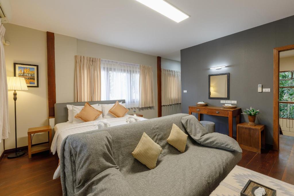 Die Architektur mischt thailändische Gemütlichkeit mit einem Hauch europäischem Vintage-Charme: warme Farben, viel Holz, dekorative Details und eine Atmosphäre, die sofort ein Gefühl von Zuhause vermittelt. Viele Zimmer haben liebevoll eingerichtete Sitzecken, bequeme Betten und kleine Balkone, auf denen man den Tag mit einem Kaffee beginnen oder den Abend ausklingen lassen kann.