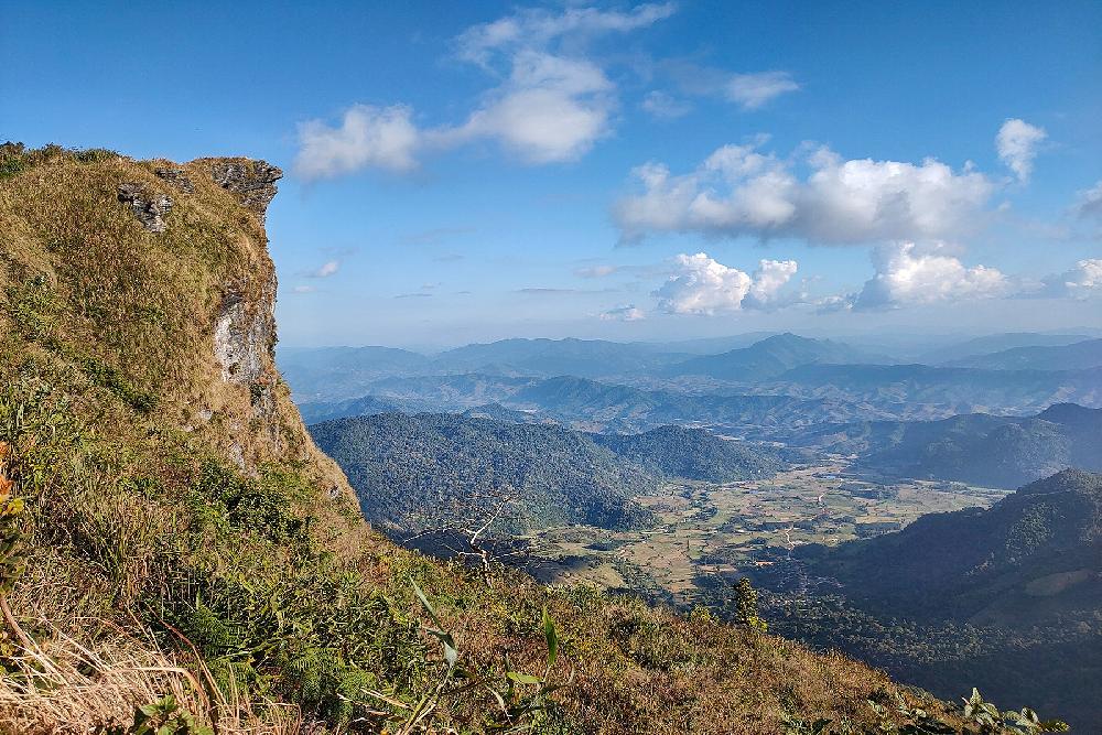 Die verschiedenen Aussichtspunkte, die sich entlang des Klippenpfades befinden, bieten einen dramatischen 360-Grad-Blick auf die Bergkette, die die Grenze zwischen Thailand und Laos bildet.