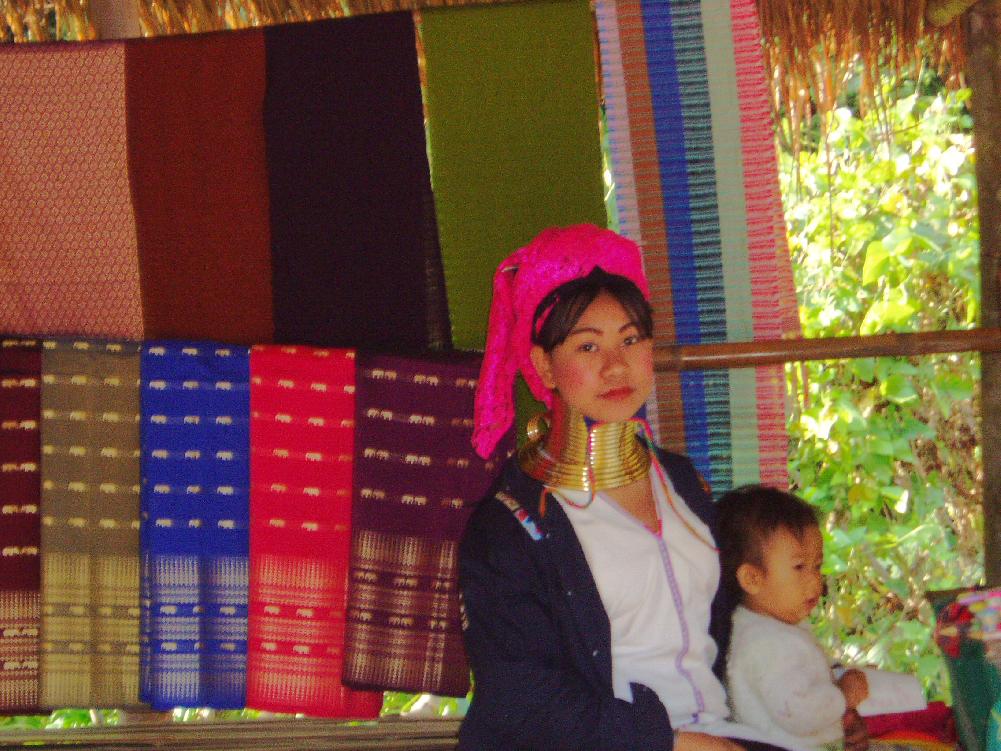 Schön muss das schon sein, denn sicherlich gehören die Paduang zu den meist fotografierten Frauen der Welt und ausserdem ist es ein Muss. Ohne diese Halsringe wäre eine Frau innerhalb der Ortsgemeinschaft untragbar. Die Anzahl der Ringe wird jährlich um eine erhöht und damit der Hals gestreckt. Sicherlich nicht sonderlich bequem, denn zum Beispiel das Trinken geht mangels der Möglichkeit den Hals nach hinten zu recken, nur mit der Zuhilfenahme eines Strohhalms.