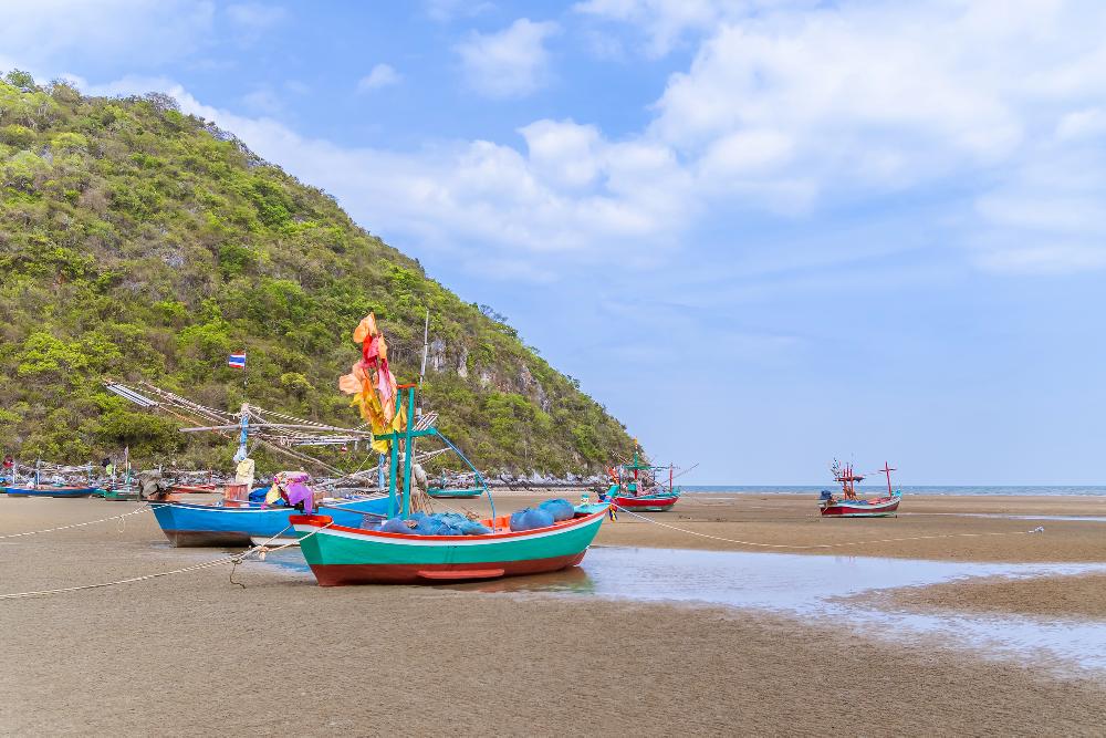 In der Nähe liegt der Khao Sam Roi Yot Nationalpark, ein Gebiet voller Kalksteinfelsen, Lagunen und Mangroven. Wer ein kleines Abenteuer sucht, sollte die Phraya Nakhon-Höhle besuchen – mit dem königlichen Pavillon, der im Sonnenlicht fast magisch leuchtet. Und für Vogelfreunde: In den Mangroven leben Reiher, Eisvögel und sogar Adler. Wer Glück hat, sieht morgens Fischerboote im Nebel und Flamingos im Watt – eine Szene, die man sonst eher in Dokus erwartet.