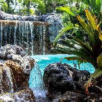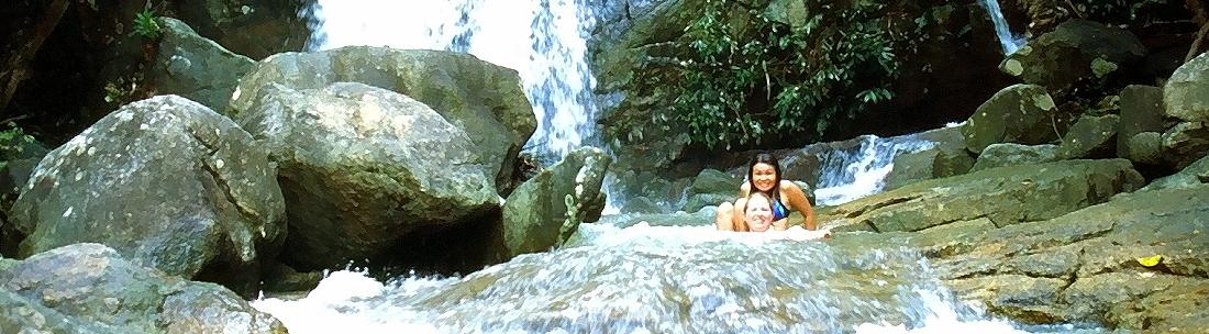 Ein erfrischendes Süsswasserbad kann man in dem Becken des Hin Lad Wasserfalles nehmen, der sich in mehreren Kaskaden den Regenwald hinunterstürzt. (Bild rechts)