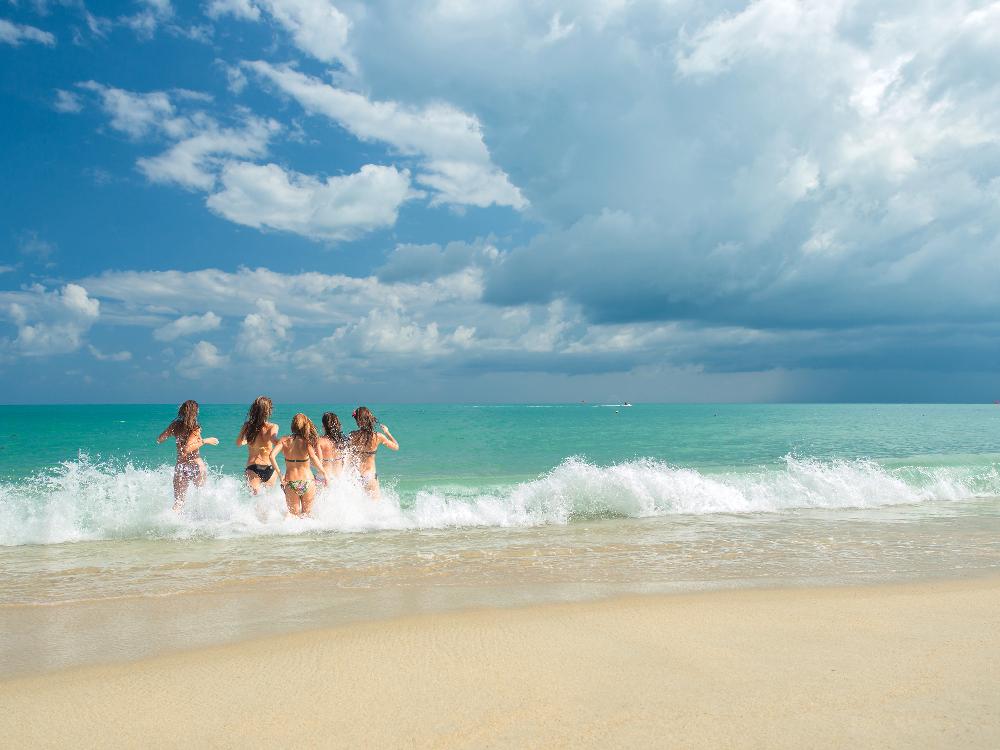 Dem fein weissandigen Sandstrand hat dies aber keinen Abbruch getan. Noch immer sind vom Wasser aus keine Hochhäuser oder Bettenburgen auszumachen, sondern nur der Kontrast des türkisfarbenen Wassers, des weissen Sandes und der im Palmengrün versinkenden Bungalowanlagen.