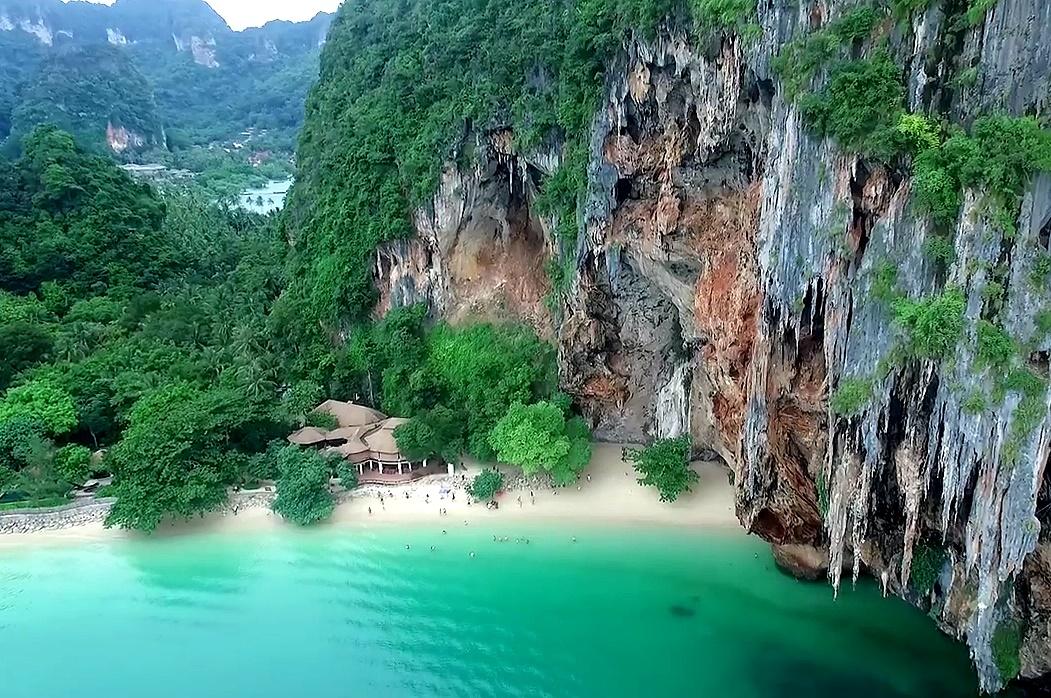 Hinter dem Strand erstreckt sich ein üppiger tropischer Regenwald. Der Wald ist Heimat einer vielfältigen Tierwelt, darunter exotische Vögel, Echsen und Affen. Wanderwege führen durch den Wald und bieten die Möglichkeit, die reiche Flora und Fauna zu entdecken. In der Umgebung von Railay Beach gibt es einige faszinierende Höhlen und versteckte Lagunen.