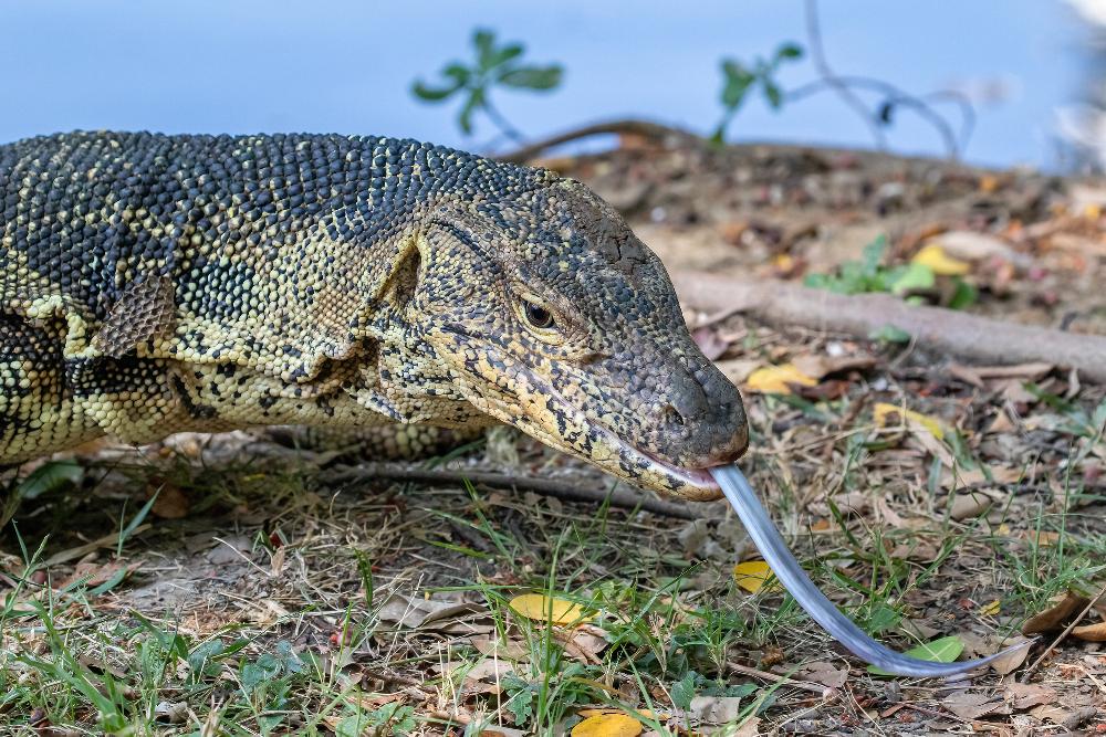 Selbst in Mitten in der City, in Bangkoks grossem Lumphini Stadtpark findet man die bis zu 2,5 m langen und bis zu 50kg schweren Warane am Ufer der künstlich angelegten Seen. Die sind eigentlich völlig harmlos… wenn man sie in Ruhe lässt. Die übellaunigen Tiere hassen Nähe zu ihren Artgenossen ebenso wie die zu Menschen. Und wenn man zu nahe kommt, dann schnappen die schon mal zu, giftig durch spezielle Eiweisse in ihrer Mundhöhle, zwar nicht tödlich aber gewisse Bakterien machen dem gebissenen Opfer das Leben schon sehr schwer…Übrigens, Warane sind nicht so langsam, auf der Kurzstrecke bis zu 18km/h schnell und die Flucht auf den Baum kann man sich sparen, denn sie können auch klettern... also bitte einfach Respektabstand halten. Und wenn dich mal einer an deinem Liegehandtuch am Strand oder im Park besucht, einfach so tun als wäre nichts... du bist als Opfer einfach zu gross.