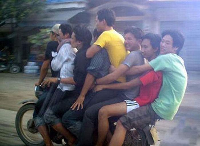 Da wären zum Beispiel die Millionen von Mopedfahrern, die ihr Fahrzeug lieben und diese Liebe wird offensichtlich dadurch bewiesen, dass der Thai es mit möglichst vielen Personen belädt. 3 Erwachsene sind anscheinend das Mindeste, was so ein Moped braucht und die dürfen dann natürlich keinen Helm tragen, zumindest die hinteren. Gut manchmal gehen auch 5 Personen auf so ein kleines Moped oder 2 und 4 Kinder, aber so gut wie sicher ist, dass ausser dem Fahrer keiner einen Helm trägt.Es gibt nun eine Helmpflicht, die den Fahrer dazu zwingt, seinen Kopf zu bedecken. Mit was? Ist scheinbar nicht geregelt. Es muss halt aussehen wie ein Helm. Die Helme, die es in den Motorradläden gibt, versprechen nicht unbedingt, dass sie einem scharfen Bewurf mit Wattebällchen standhalten würden, aber deshalb heissen sie wahrscheinlich auch nicht Helmet, sondern Cap.