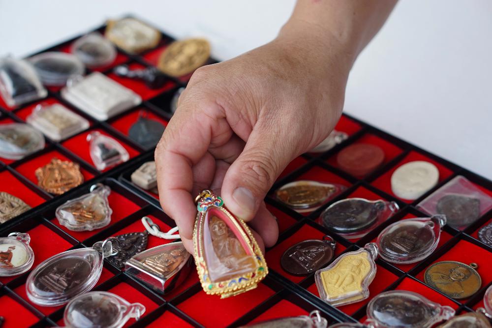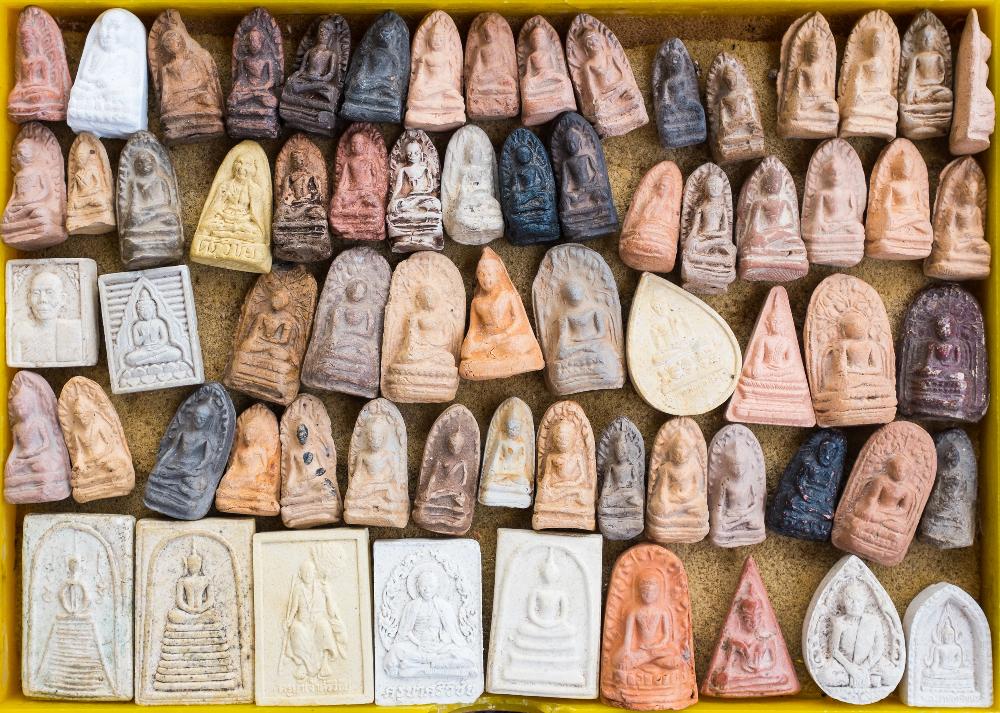 Ein thailändisches Amulett ist im Prinzip ein kleiner, geweihter Glücksbringer, meist mit einem Buddha-Bildnis, einer Mönchsfigur oder mythologischen Symbolen versehen. Diese winzigen Kunstwerke sollen ihren Träger beschützen, Glück bringen, Krankheiten fernhalten, Geschäfte beflügeln oder bei der nächsten Polizeikontrolle milde Blicke bewirken.Gefertigt werden sie aus allem, was in einem Kloster nicht bei drei auf dem Bodhi-Baum ist: Ton, Bronze, Silber, Gold, Edelmetall, Knochen, Holz, Reliquienstaub, Asche heiliger Mönche – und manchmal sogar geheimnisvollen Kräuter- oder Erdmixturen, die ein Mönch persönlich zusammenrührt.