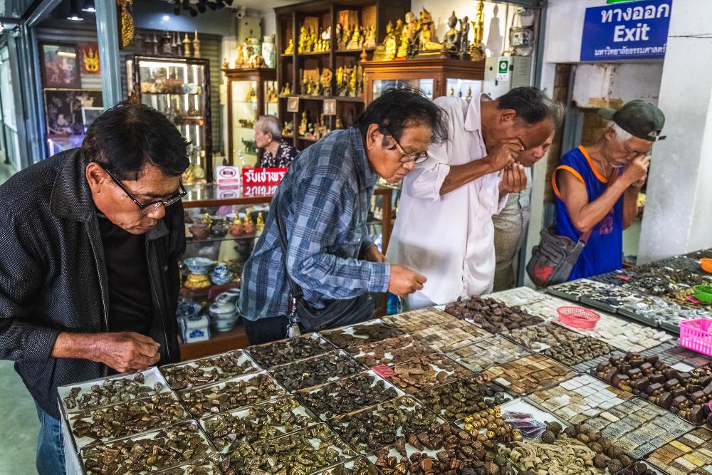 Händler sitzen mit Lupen bewaffnet hinter Glasvitrinen, während Sammler ehrfürchtig kleine Plastiktüten mit Amuletten inspizieren, als handle es sich um Reliquien aus einer anderen Welt. Hier wird nicht gefeilscht, sondern geflüstert, getauscht, gebetet und manchmal heimlich spekuliert. Der Amulet Market ist mehr als ein Markt – er ist eine eigene Parallelwelt zwischen Glaube, Geschäft und ganz viel Glück.