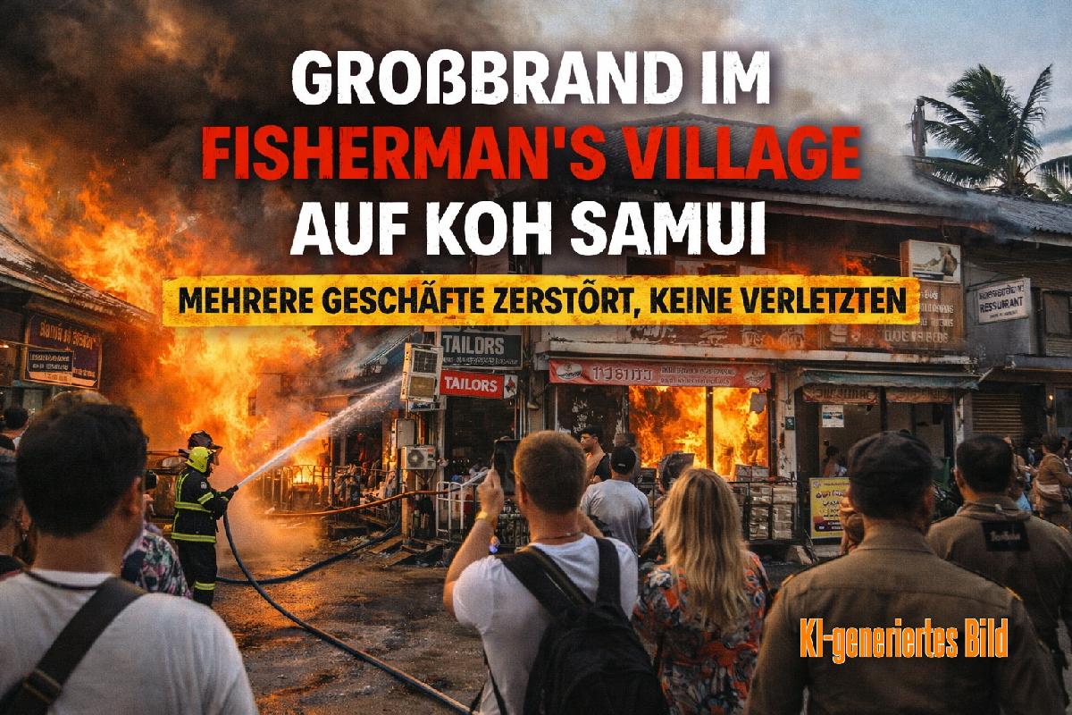 Ein Feuer hat heute Teile des beliebten Fisherman’s Village in Bophut auf Koh Samui beschädigt und für Aufregung unter Anwohnern, Geschäftsinhabern und Touristen gesorgt. Der Brand brach am Nachmittag in einer der engen Geschäftszeilen des historischen Viertels aus und griff schnell auf benachbarte Gebäude über.