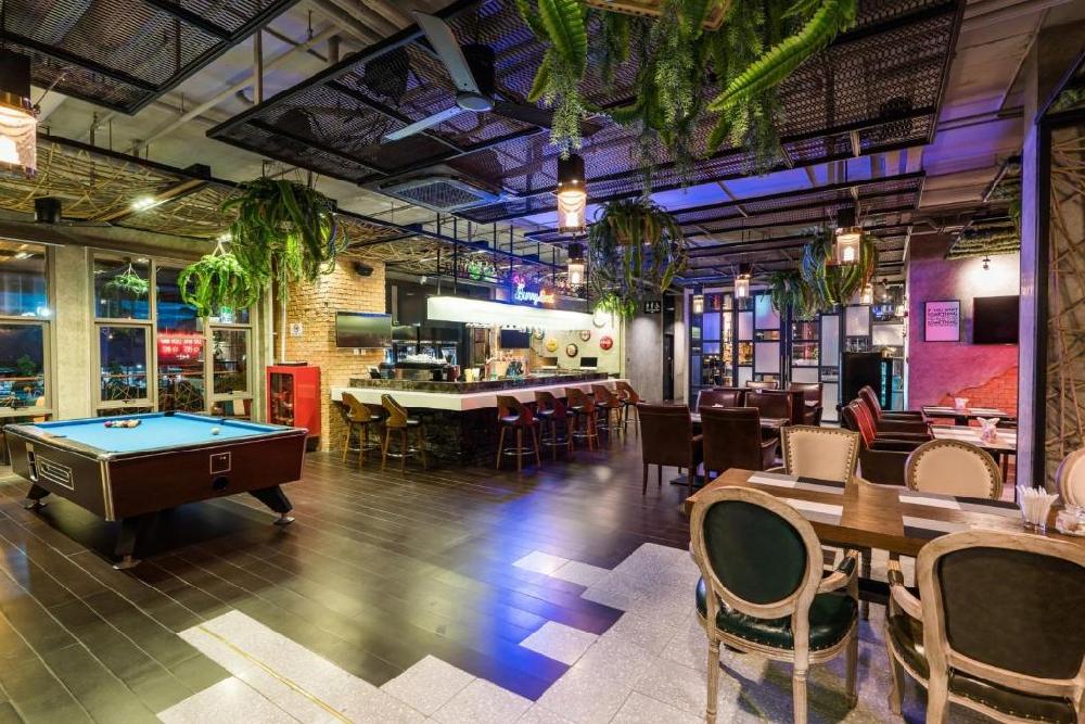Das hoteleigene Restaurant serviert den ganzen Tag über frische, regionale und internationale Küche, während die Rooftop-Ebene mit Infinity-Pool, Fitnesscenter und einer Bar mit Panoramablick zum Verweilen einlädt. Besonders bei Sonnenuntergang wird die Dachterrasse zum Highlight des Hauses – perfekt für einen Cocktail mit Aussicht auf die Lichter Pattayas.