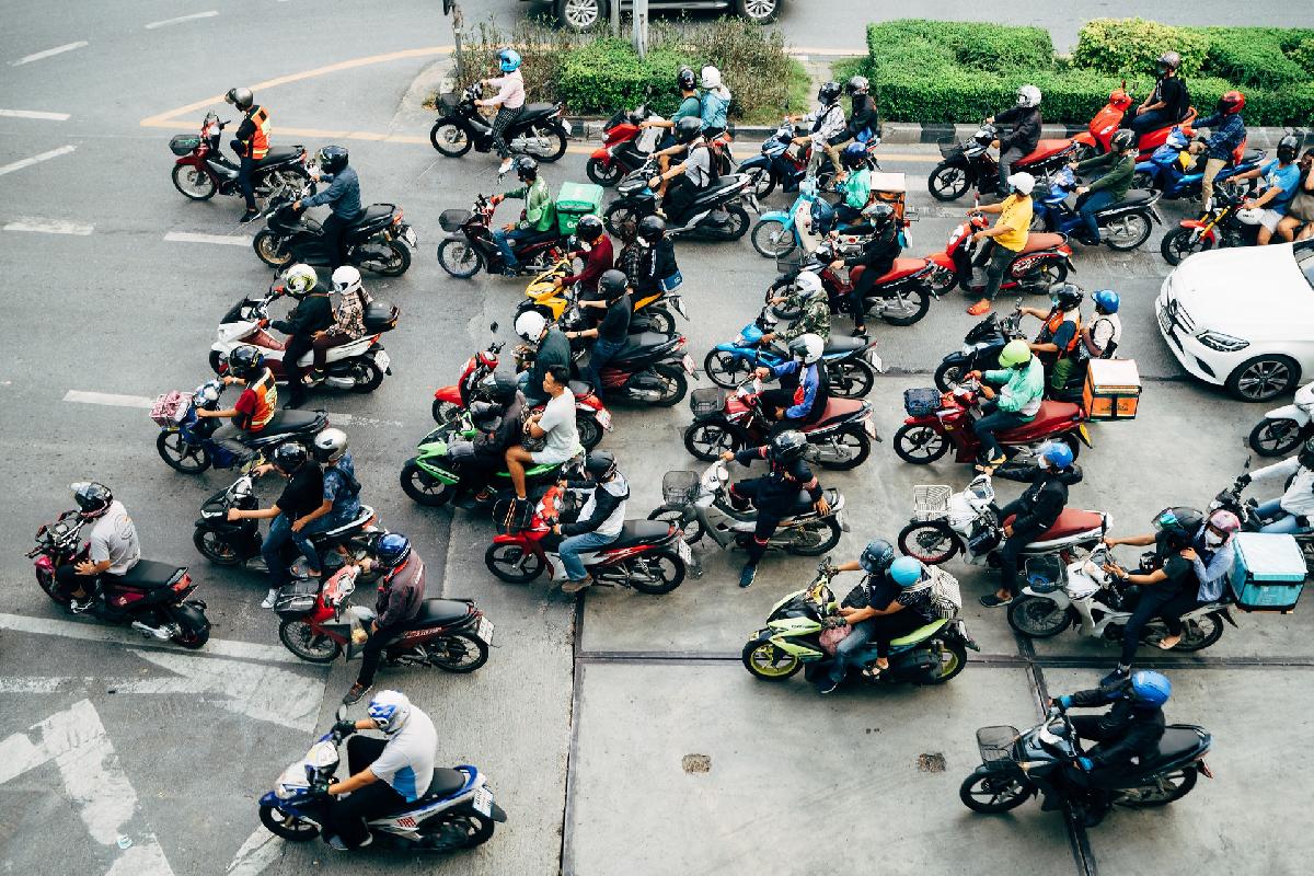 Untersuchungen im Rahmen des Projekts „Thai-German Cooperation on Energy, Mobility and Climate“ (TGC EMC) ergaben, dass es in Bangkok mehr als 89.000 Motorradtaxi-Fahrer an über 5.300 Standplätzen gibt, die als unverzichtbares „Kapillarverkehrsnetz“ bezeichnet werden. Wenn auch nur ein Teil davon elektrisch unterwegs wäre, hätte das spürbare Auswirkungen auf Lärm, Abgase und Betriebskosten.