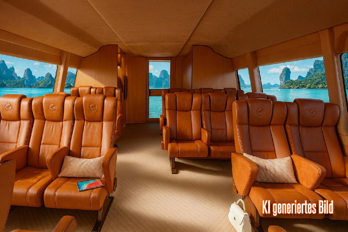 „Koh Kood soll mehr Reisende aufnehmen können, ohne seine Seele zu verlieren“, sagt Surachai Suwanthanakul, CEO von Leopard Transportation, zu dem Seudamgo gehört. Sein Ziel: Wachstum ja – aber sanft, leise und nachhaltig.Die eingesetzte Candela P-12 Business-Version bietet Platz für 20 Passagiere in einer klimatisierten Kabine. Das Besondere: Das Boot hebt sich während der Fahrt mithilfe von Hydrofoils rund einen Meter über die Wasseroberfläche und gleitet dann fast schwebend mit 25 Knoten (46 km/h) dahin. Durch den Wegfall des Wasserwiderstands reduziert sich der Energieverbrauch um 80 Prozent, und die Passagiere genießen eine ruhige, stabile Fahrt – ohne Seekrankheit, Dieselgeruch oder knatternde Motoren.