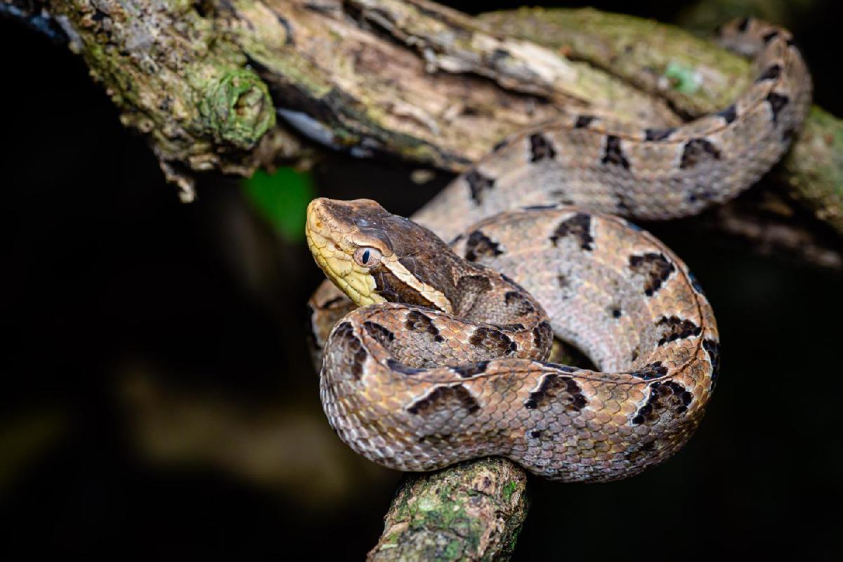 Die Malaiische Grubenotter (Pit Viper) gehört zur Familie der Vipern (Viperidae), einer Gruppe, die für potent giftige Arten bekannt ist. Ihr Gift wirkt vor allem hämotoxisch – es greift Blut und Gewebe an, kann Gewebeschäden, starke Schwellungen, Blutgerinnungsstörungen und bei schweren Bissen sogar Organversagen oder Tod verursachen.In Südostasien zählt sie zu den häufigsten Schlangenarten, die Menschen bei Begegnungen beißen. Obwohl Todesfälle eher selten sind, können unbehandelte Bisse schwere Folgen haben, einschließlich Gewebeverlust oder bleibender Schäden, wenn keine schnelle medizinische Versorgung erfolgt.