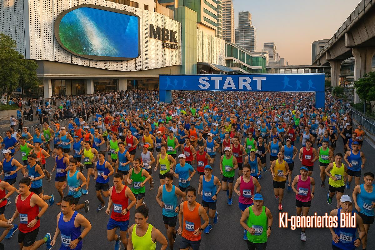 - Marathon (42,195 km) und Halbmarathon (21,1 km) beginnen auf der Phayathai Road, direkt vor dem MBK Center, einem Wahrzeichen Bangkoks.