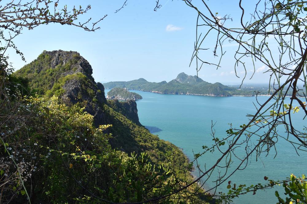 Der Gipfel von Khao Lom Muak erhebt sich auf etwa 300 Meter über dem Meeresspiegel und bietet einen unvergleichlichen 360-Grad-Blick auf die umliegende Landschaft. Von hier aus lassen sich die drei malerischen Buchten – Ao Manao, Ao Prachuap und Ao Noi – in ihrer ganzen Pracht bewundern. Besonders in den frühen Morgenstunden oder zum Sonnenuntergang entfaltet sich ein spektakuläres Farbenspiel über dem Golf von Thailand, das Fotografen und Naturliebhaber gleichermaßen begeistert.